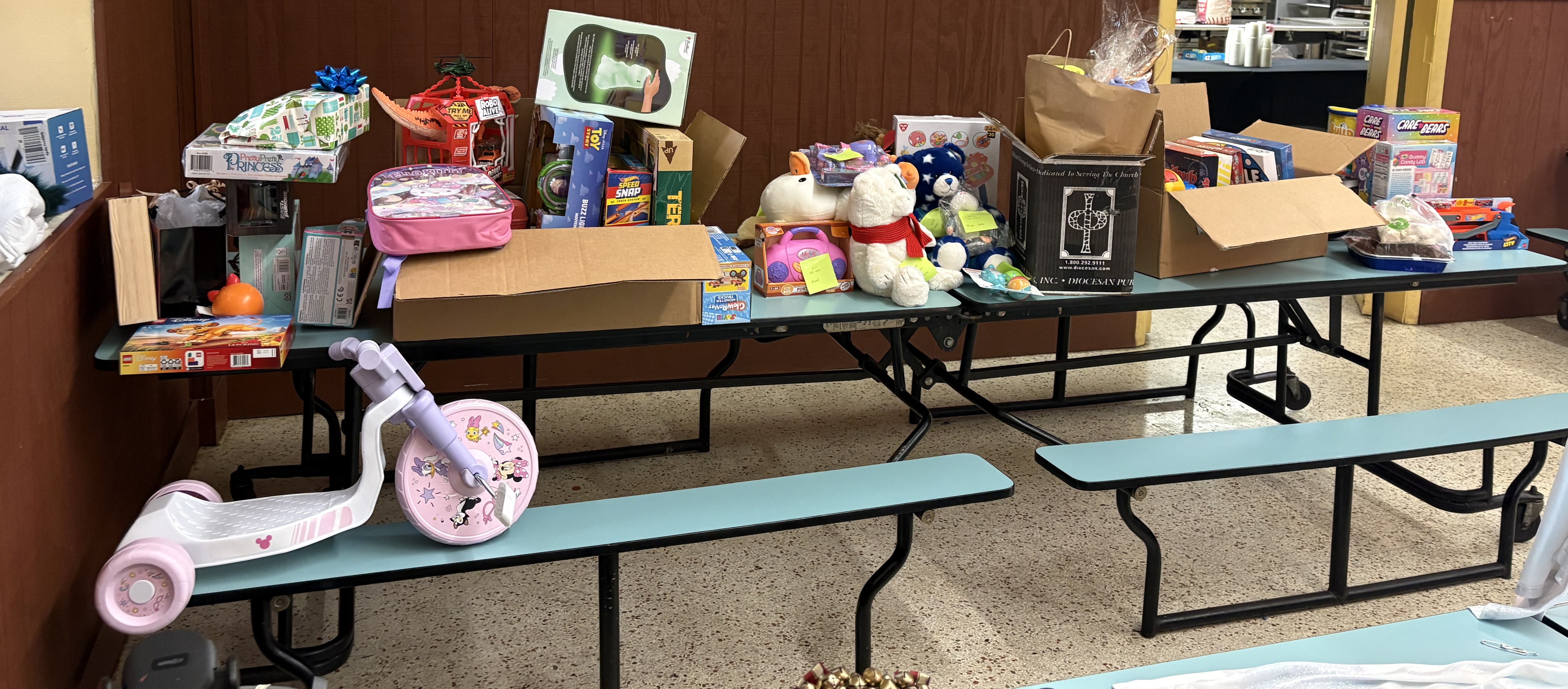 At St. Paul’s Basilica, toys were distributed on the final day of the Christmas Novena, with remaining gifts given during the January 6 Three Kings Day celebration.